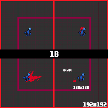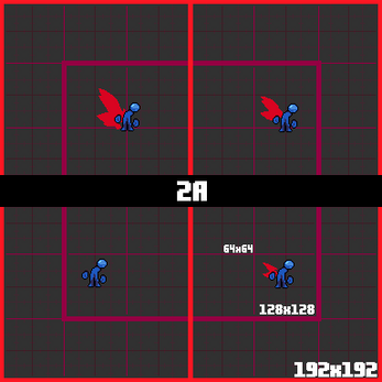 Each square is 16x16. So each animation ranges from 16x16 to 48x32.